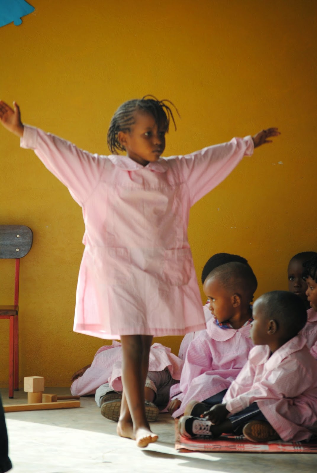 Fomos recebidos com o hino nacional e uma peça de teatro sobre o nascimento de Jesus acompanhada pelo som de batuques, muito bem encenada pelas educadoras e ternamente representada pelos meninos e pelas meninas da escola.